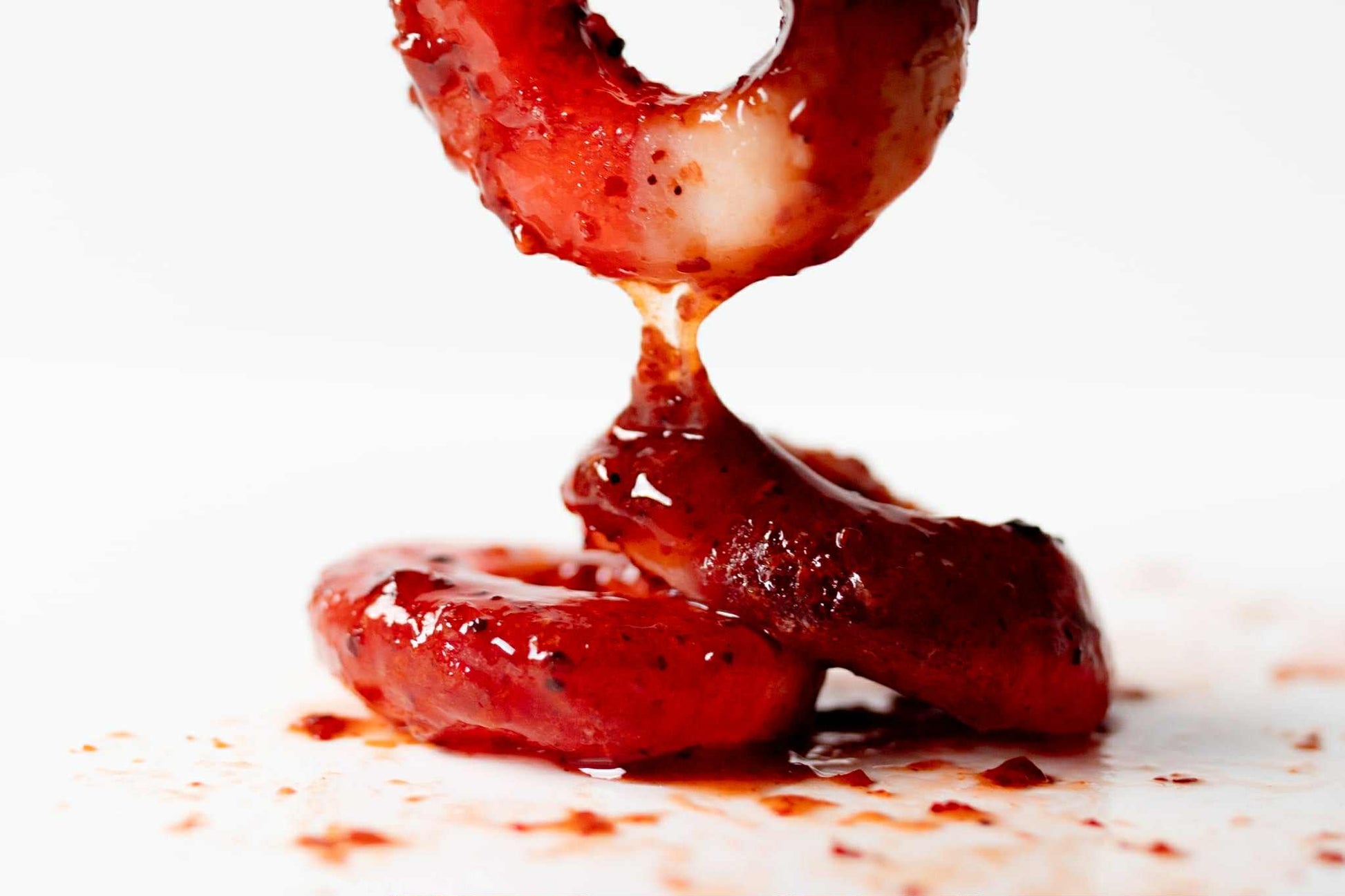 Juicy, sweet, and perfectly chewy! Our watermelon rings are coated in our signature chamoy for a tangy, spicy twist. At events, we serve them with our popular Watermelon Chamoy—a refreshing combo that’s bursting with flavor!